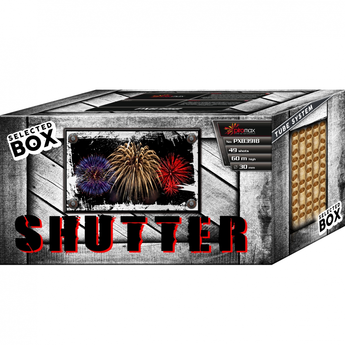 Bateria Shutter 49-strzałowa Efekt: błękitne ogony zakończone czerwonymi daliami i śnieżno- białym migotaniem, czerwone komety przechodzące w tytanowo złotą palmę zakończoną zielonymi perłami, złote brokatowe korony z zielonym migotaniem, zielone komety przechodzące w złote płaczące wierzby z błękitnymi perłami, błękitne ogony przechodzące w brokatowe korony zakończone zielonymi i czerwonymi perłami, czerwone komety przechodzące w srebrne palmy zakończone niebieskimi perłami z migoczącym epicentrum, srebrzyste komety przechodzące w tytanowe palmy i czerwonym opadającym migotaniem, czerwone komety przechodzące w migoczące wierzby, trzeszczące miny przechodzące w złote trzeszczące płaczące wierzby